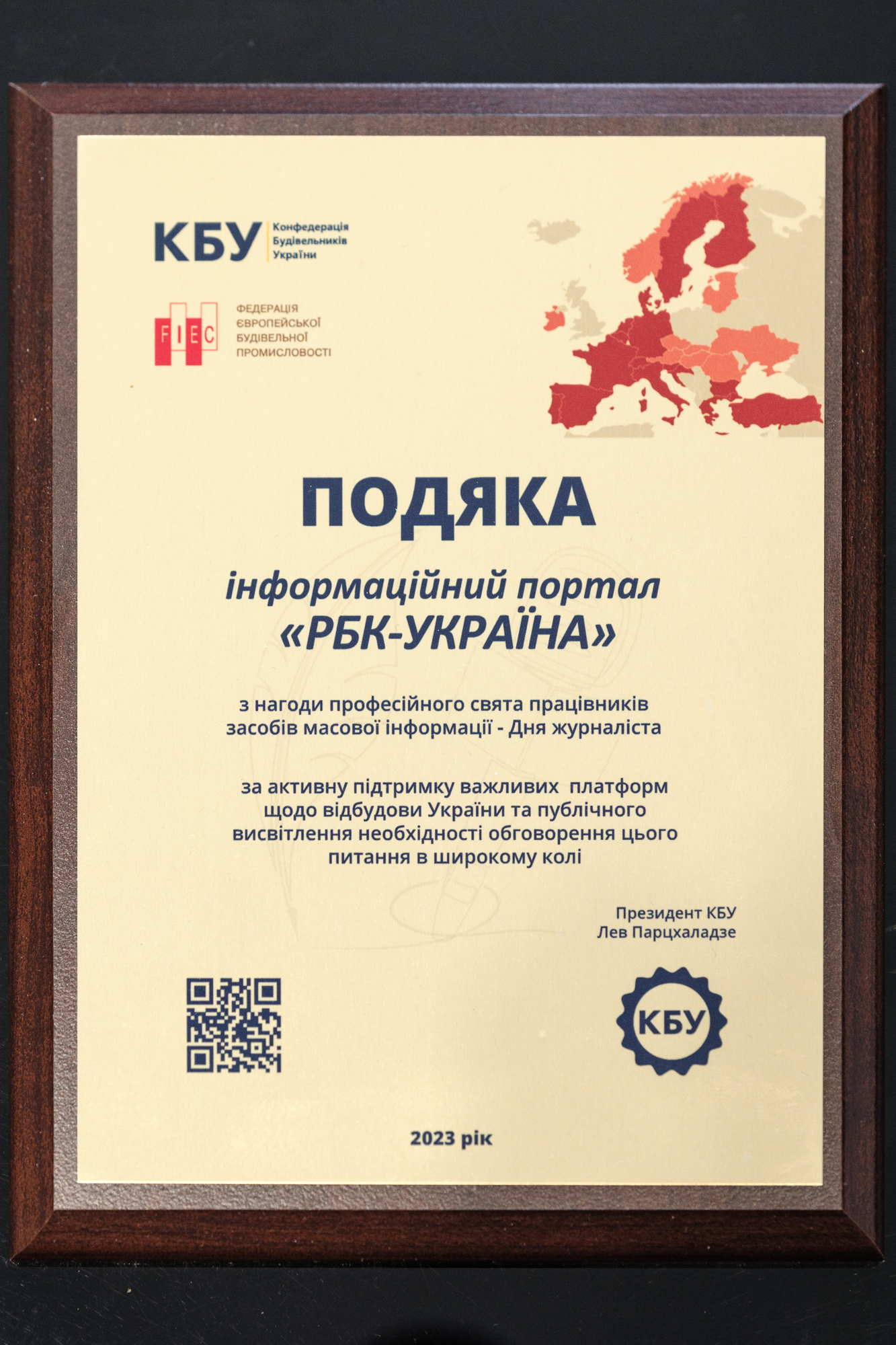 Подяка інформаційному порталу “РБК-Україна” за активну підтримку важливих платформ щодо відбудови України та публічного висвітлення необхідності обговорення цього питання у широкому колі.