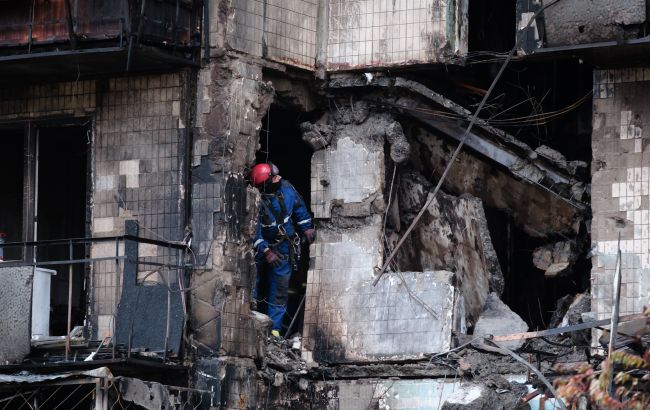 Як виглядає пошкоджена багатоповерхівка у Києві після удару РФ: репортаж РБК-Україна