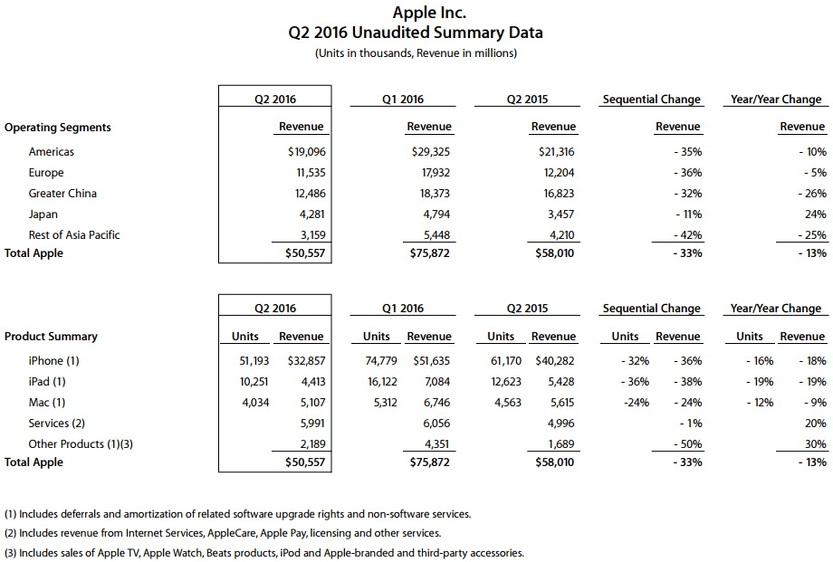Также Apple заявила, что продала 51,2 млн смартфонов iPhone во II финансовом квартале по сравнению с 61,2 млн в том же квартале год назад. Это выше оценок аналитиков примерно на 50 миллионов устройств.