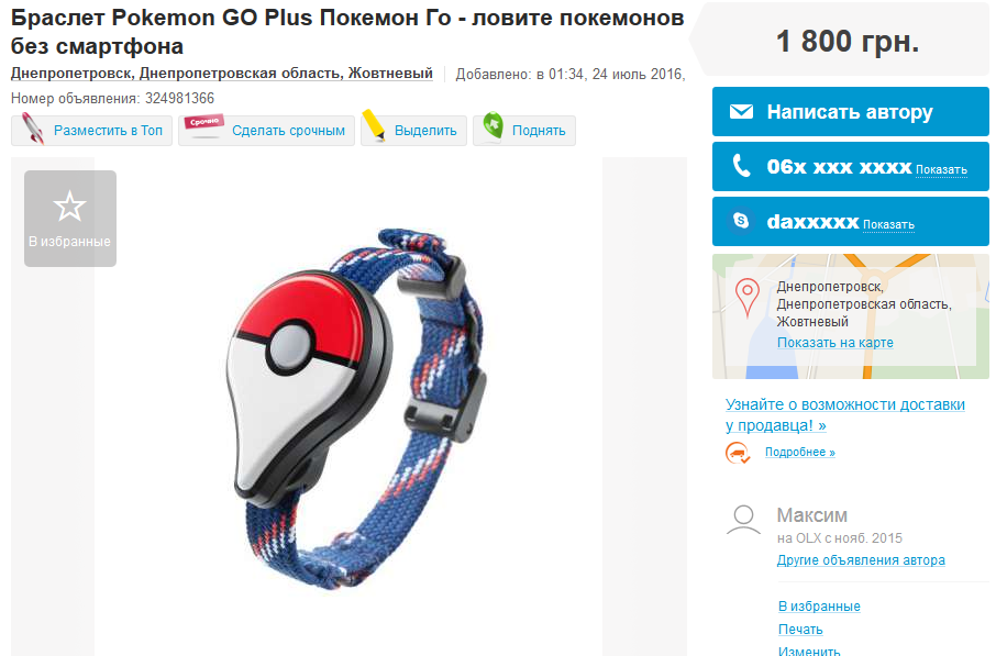 На сегодня сервис частных объявлений OLX выдает около 300 объявлений по поисковому запросу "Pokemon Go"