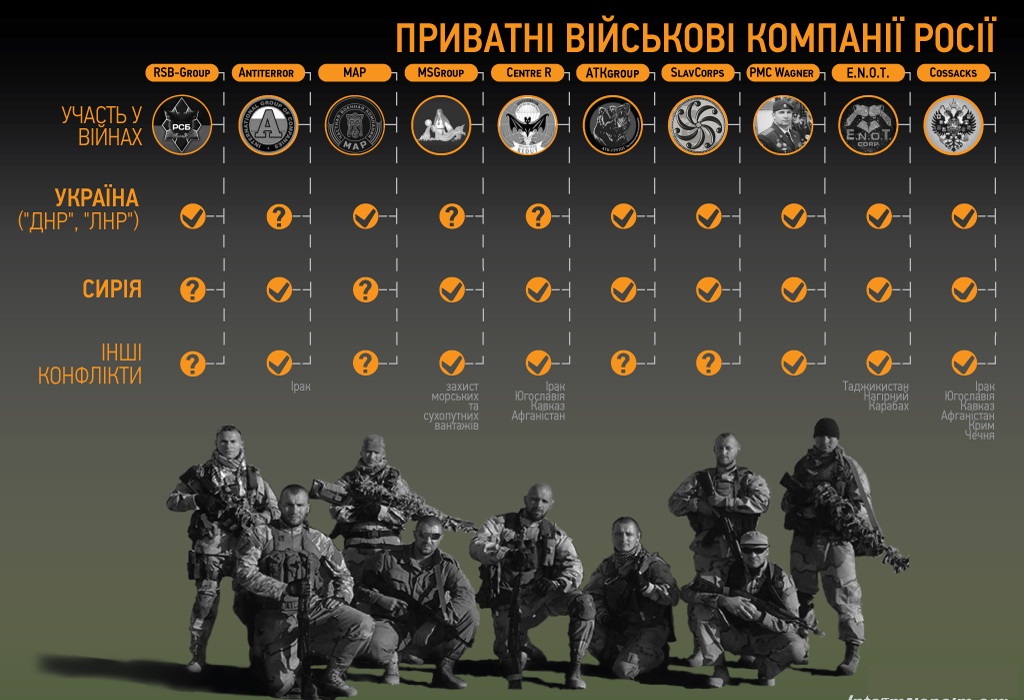 Инфографика: частные военные компании (ЧВК), выполняющие боевые задачи за рубежом в интересах РФ