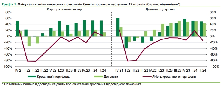 За даними НБУ, у квітні - червні 2024 року попит населення на позики зріс. Рушіями попиту на іпотеку стали ліпші споживчі настрої, перспективи ринку нерухомості та низькі відсоткові ставки. Попит на споживчі позики підігрівали вищі витрати на товари довготермінового користування та менші заощадження.