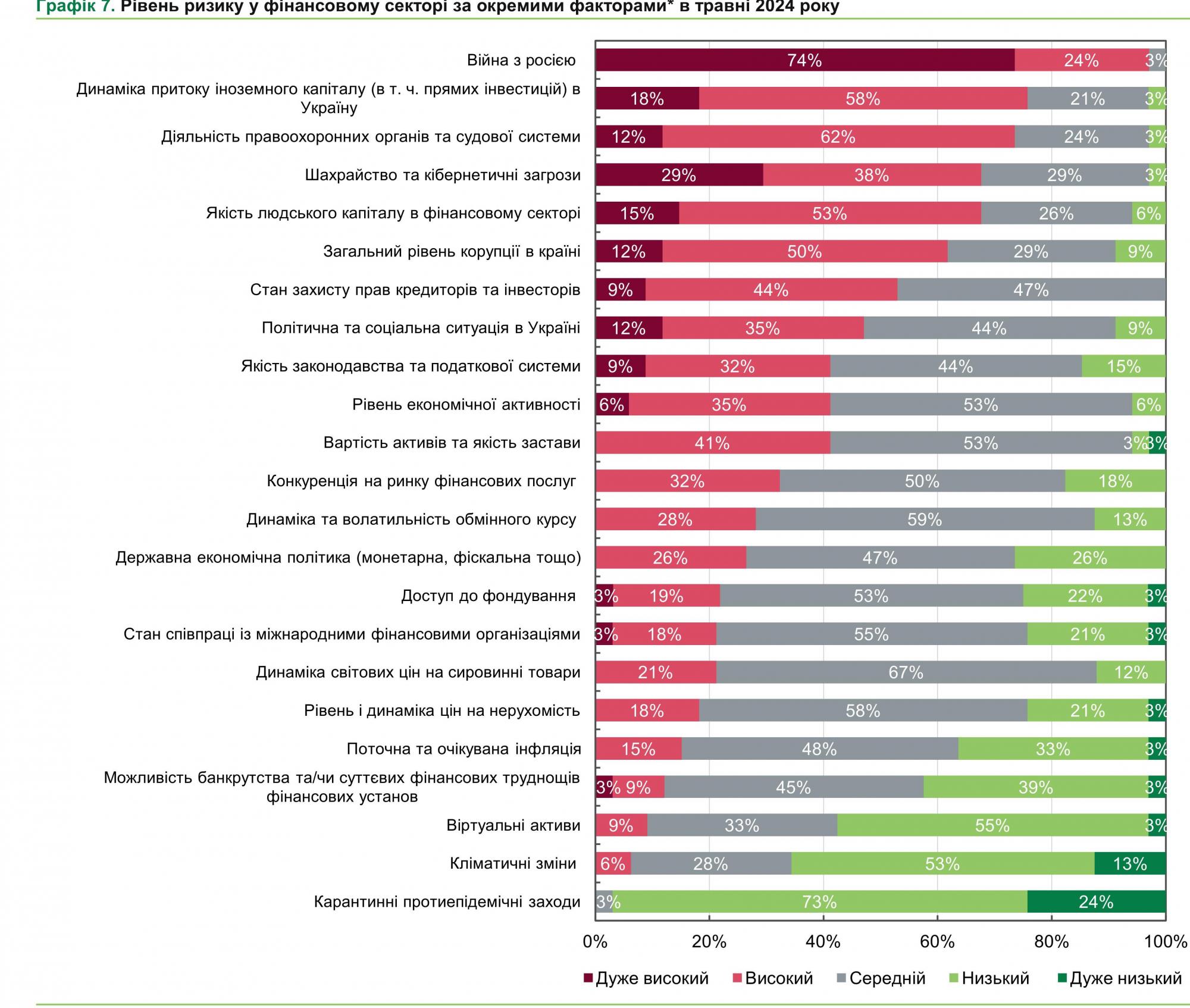 На думку керівників фінансових установ, війна з Росією і далі є основним джерелом ризиків у фінансовому секторі.
