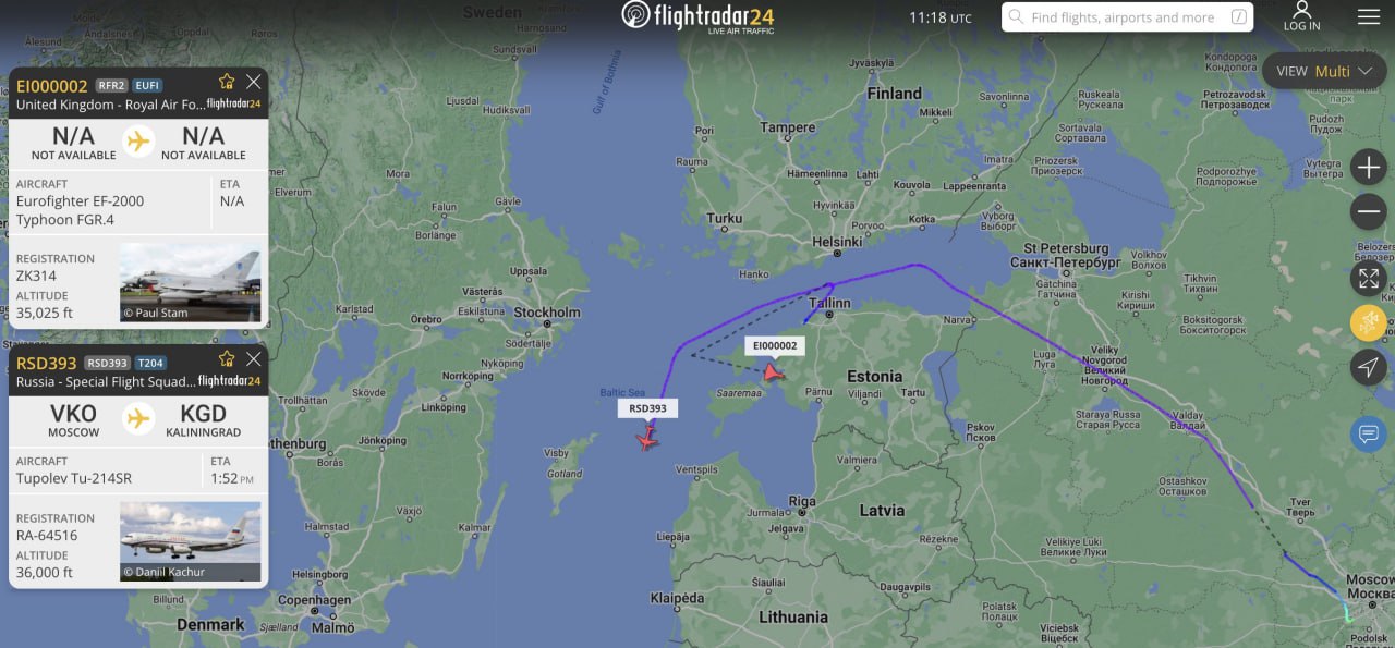 "RAF Typhoon Королівських ВПС в Естонії сьогодні піднялися в повітря, щоб перехопити Ту-214 ВПС Росії, який летів у міжнародному повітряному просторі під контролем союзників НАТО", - сказано в повідомленні.