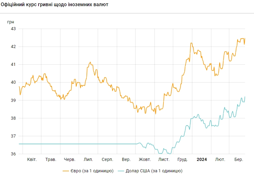 Офіційний курс на 26 березня 2024 року встановлено на такому рівні: 39,2298 грн за 1 долар (+0,3223 грн).