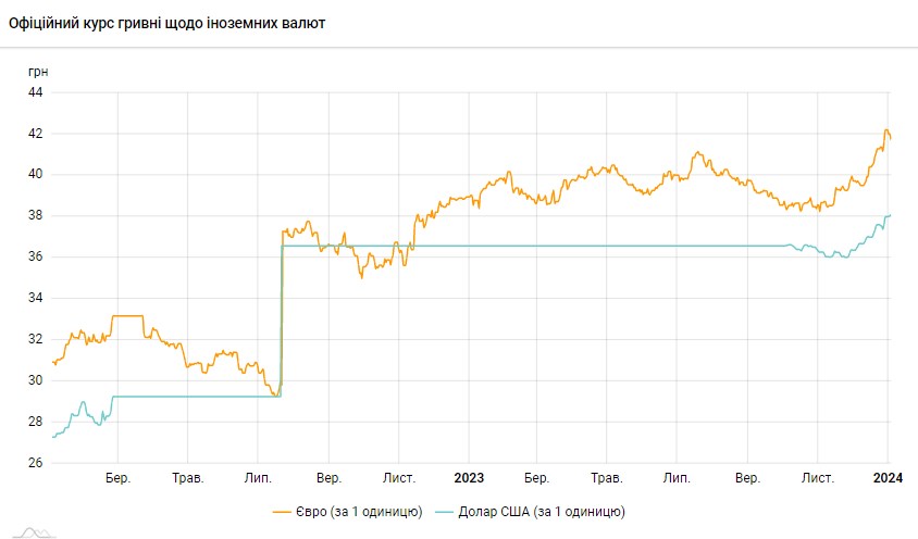 Очікується, що на початку 2024 року Національний банк продовжить активно впливати на валютний ринок та поступово послаблювати гривню. На міжбанку курс може становити 37,70-38,50 грн/долар, на готівковому ринку - плюс ще 50-60 копійок.