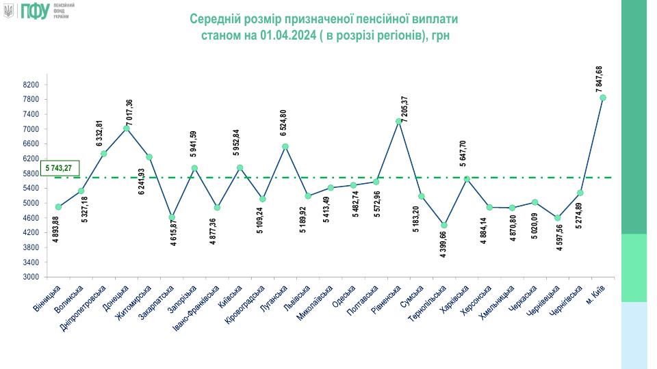 Нагадаємо, середній розмір пенсії на 1 квітня 2024 року становив 5 743,27 гривень. Середній розмір пенсії за квартал зріс на 358 гривень або на 6,7% до 5 743,27 гривень.