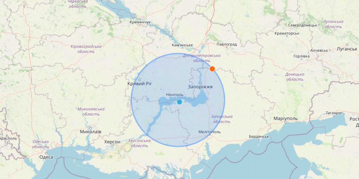 Фото: потенційна зона відчуження у разі підриву реакторів ЗАЕС