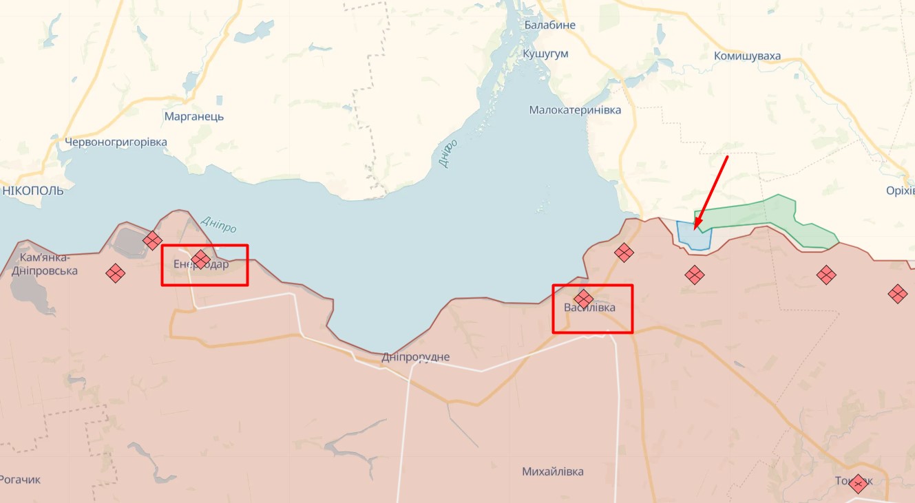 Фото: контрнаступ на півдні може наблизити деокупацію Василівки та Енергодару (deepstatemap.live)