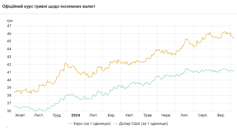 Офіційний курс на 7 жовтня 2024 року встановлено на такому рівні: 41,1859 грн за 1 долар (-0,0343 грн).
