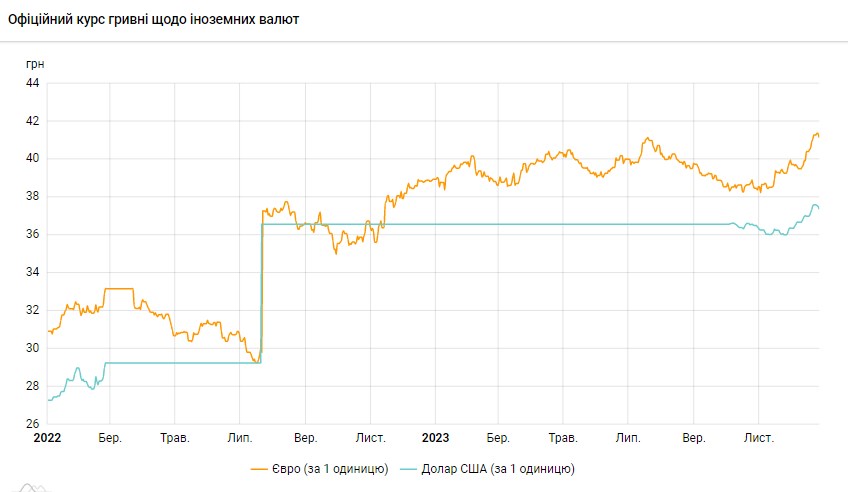 Офіційний курс на 27 грудня 2023 року встановлено на такому рівні: 37,3684 грн за 1 долар (-0,1541 грн).