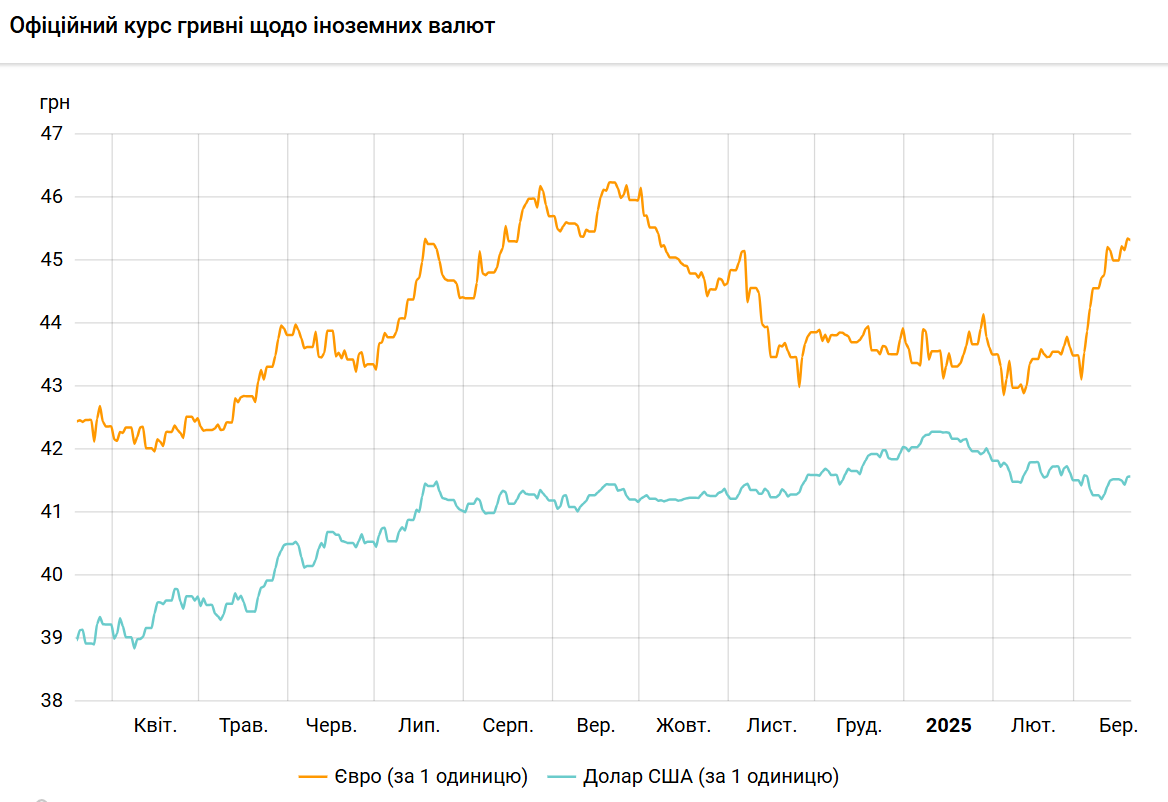 Офіційний курс на 20 березня 2025 року встановлено на такому рівні: 41,5730 гривень за 1 долар (+0,0072 грн).