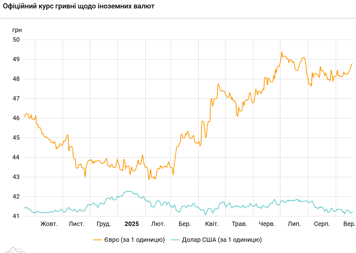 Офіційний курс на 19 вересня 2025 року встановлено на такому рівні: 41,2488 гривень за 1 долар (+0,0547 грн).