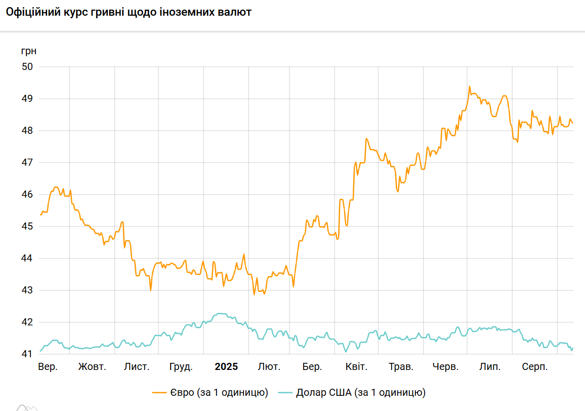 Офіційний курс на 11 вересня 2025 року встановлено на такому рівні: 41,2138 гривень за 1 долар (+0,0901 грн).