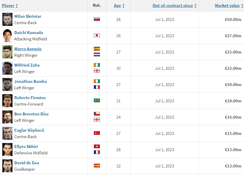 Із відкриттям літнього трансферного вікна на ринку опинилися десятки вільних агентів – футболістів без контрактних зобов'язань перед клубами. У списку відкритих до пропозицій виконавців чимало гучних імен, зокрема воротар Давід Де Хеа та вінгер Марко Асенсіо.