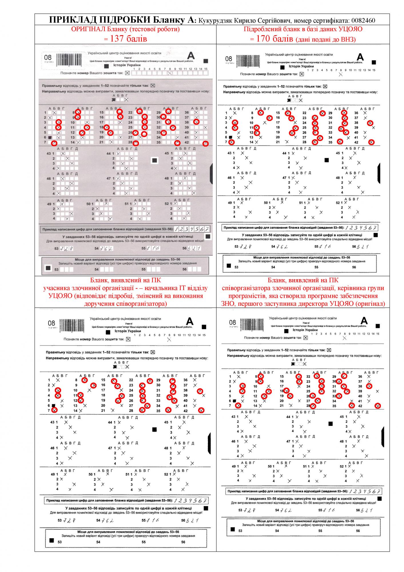 Фото: примеры изменения результатов ВНО (пресс-служба ГПУ)