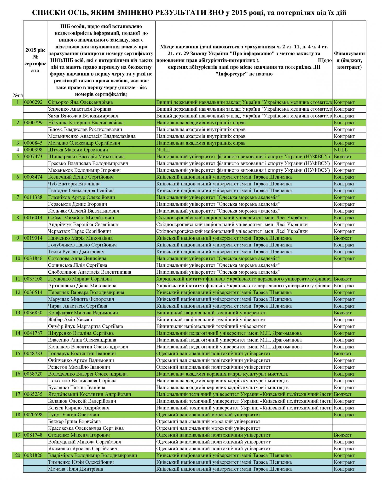 "Генеральной прокуратурой Украины обеспечивается восстановление прав потерпевших, по результатам чего уже отчислены 26 студентов, подавших недостоверные данные о результатах ВНО, и соответствующие документы направлены в высшие учебные заведения еще касательно 174 лиц", - говорится в сообщении ГПУ.