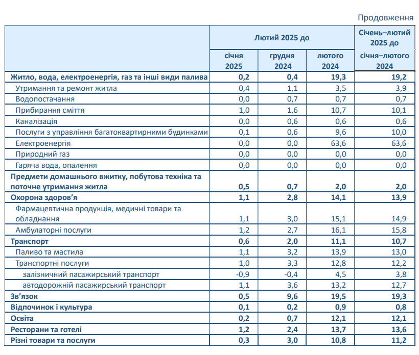 Житло, вода, електроенергія, газ та інші види палива подорожчали на 19,3%.