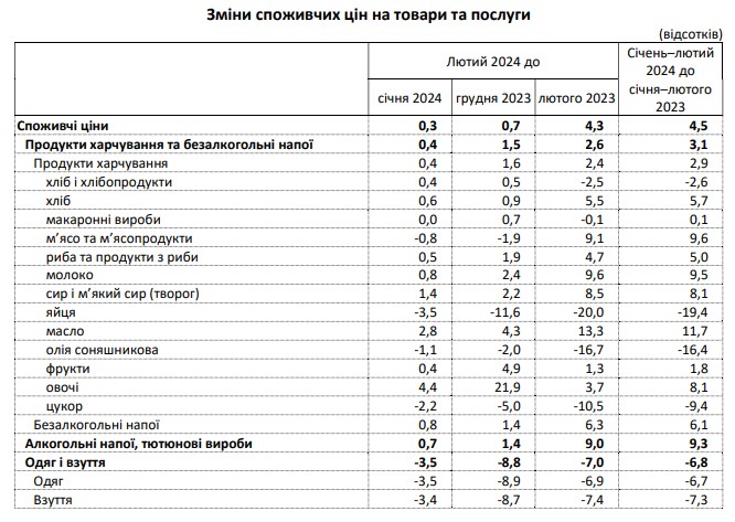 За даними статистичного відомства, за лютий ціни зросли на 0,3%, з початку року - на 0,7%.