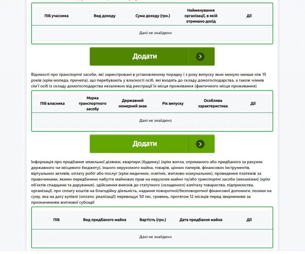 7. Додаємо відомості про житлово-комунальні послуги, які отримує домогосподарство.