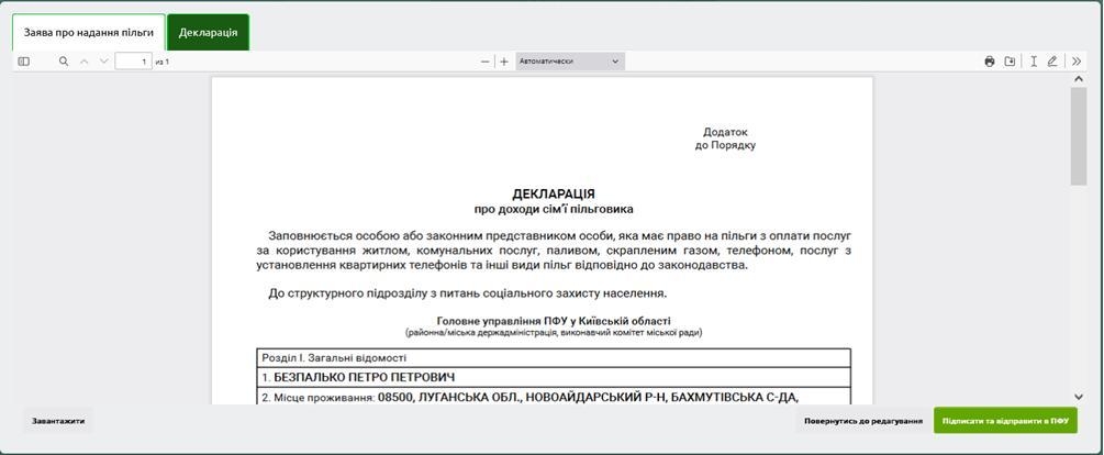 13. Перевіряємо дані сформованих заяви та декларації, накладаємо на документи цифровий підпис та надсилаємо до Пенсійного фонду.