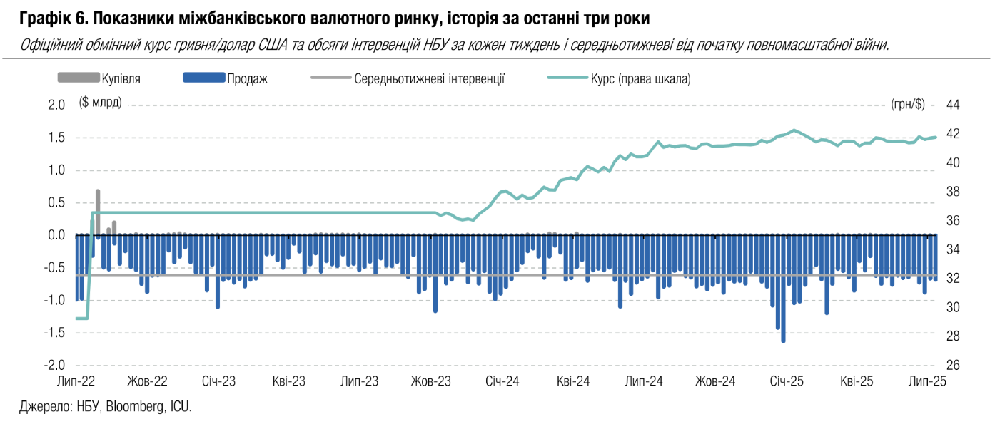 "На нашу думку, НБУ навряд чи дозволить гривні укріплюватися до рівнів відносно долара США, що спостерігалися протягом весни, і найближчим часом зберігатиме його неподалік рівня 41,8 грн/долар", - йдеться в огляді.