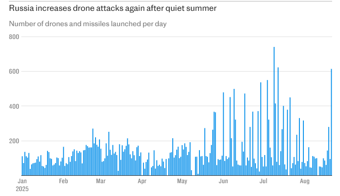 Кілька днів тому Москва запустила близько 600 дронів за одну ніч - це другий за масштабом повітряний напад з часу вторгнення в лютому 2022 року.