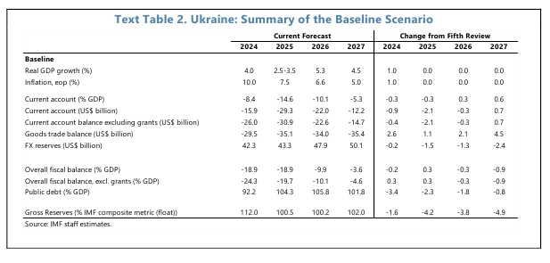 - Зростання реального ВВП України у 2024 році становитиме 4%. Це на 1 п.п. вище, ніж прогноз МВФ за жовтень.