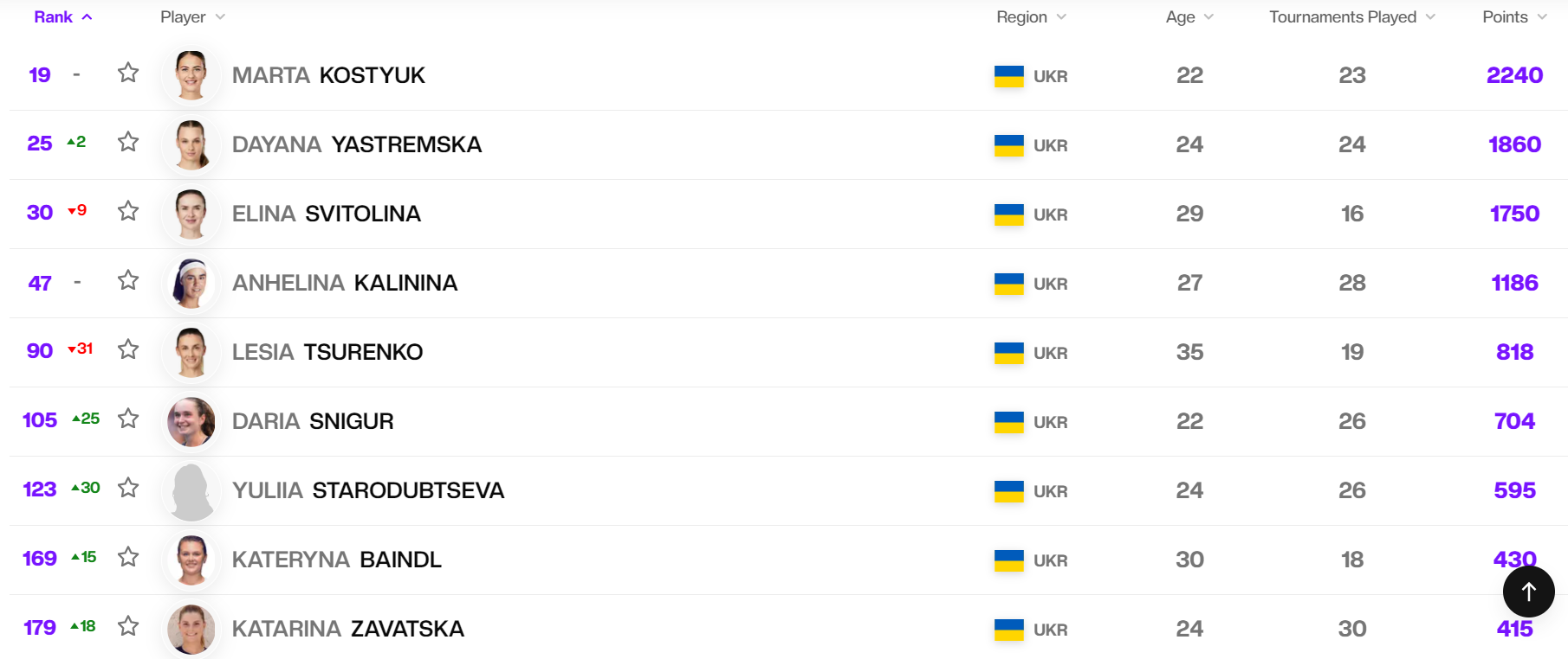 Натомість Світоліна втратила 9 сходинок і опустилася на 30-те місце. Паралельно Ястремська піднялася на два щаблі вгору та опинилася на 25-й позиції. Тим часом Ангеліна Калініна зберегла 47-ме місце, а наддосвідчена Леся Цуренко втратила аж 31 сходинку та стала 90-ю.