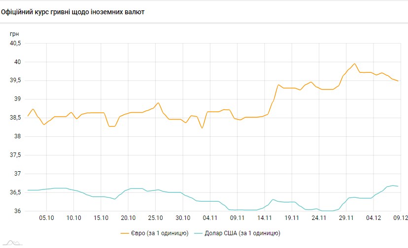 Курс євро становитиме 39,496 гривень за 1 євро (-0,0473 грн).