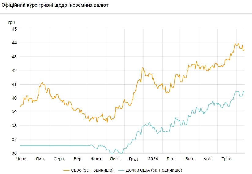Офіційний курс на 13 червня 2024 року встановлено на такому рівні: 40,4441 грн за 1 долар (-0,0737 грн).