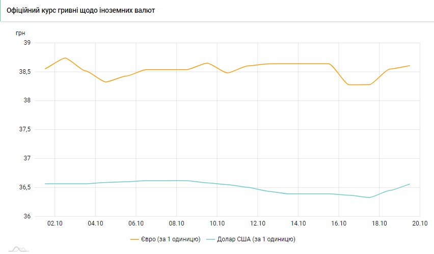 Офіційний курс гривні до долара на 19 жовтня 2023 встановлено на такому рівні: 36,5616 гривень за 1 долар (+0,1109 грн).