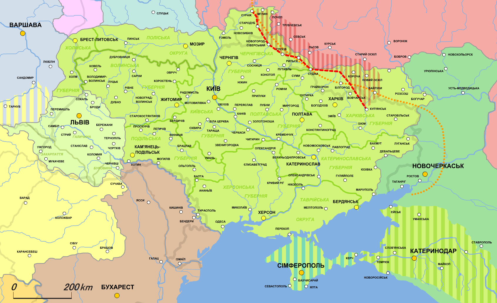 Етнічні українські землі, на які претендувала Українська держава у 1917-1921 роках (фото wikipedia.org)
