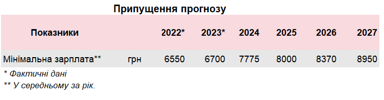 Згідно з документом, "у 2025-2027 роках розмір мінімальної заробітної плати становитиме 8000 гривень, що забезпечить досягнутий рівень гарантії з урахуванням значного підвищення у 2024 році".