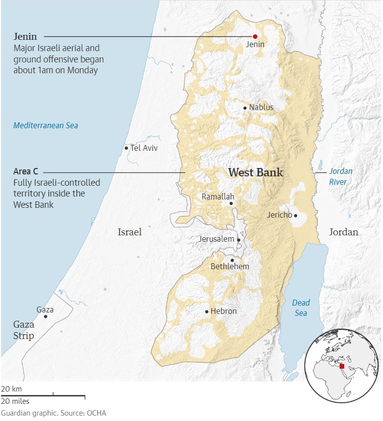 Фото: Дженін, який називають оплотом терористів, знаходиться на півночі Західного берега річки Йордан (інфографіка The Guardian)