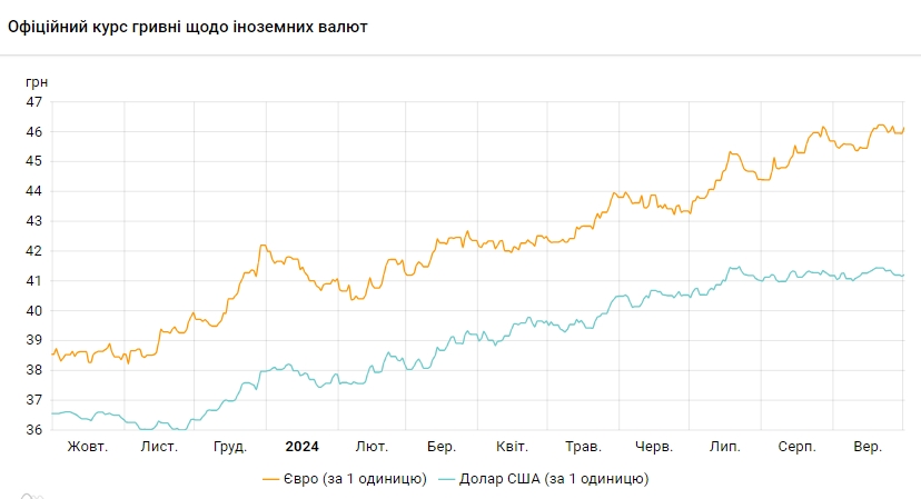 Офіційний курс на 1 жовтня 2024 року встановлено на такому рівні: 41,2199 грн за 1 долар (+0,0535 грн).