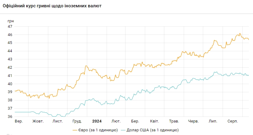 Офіційний курс на 10 вересня 2024 року встановлено на такому рівні: 41,0948 грн за 1 долар (+0,0780 грн).