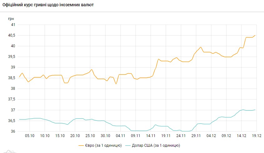 Офіційний курс на 19 грудня 2023 року встановлено на такому рівні: 37,1924 грн за 1 долар (+0,1713 грн).