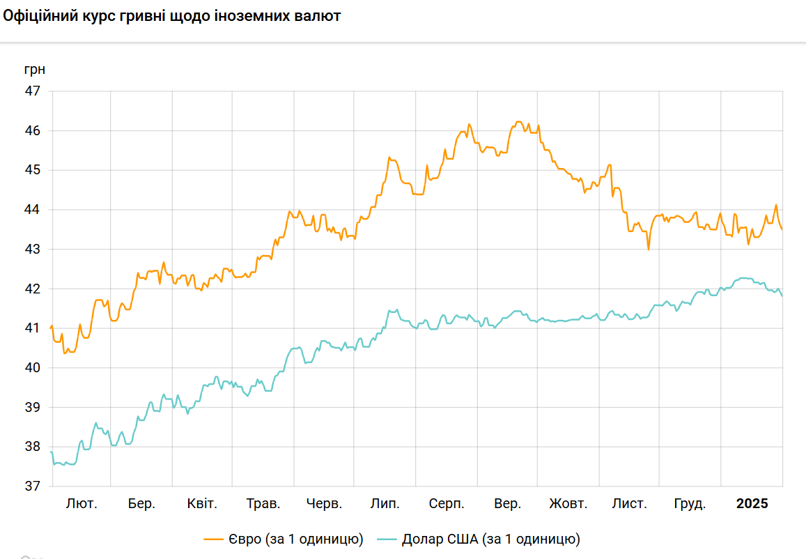 За січень курс долара знизився на 21 копійку (порівняно з 42,03 грн/долар на 31 грудня 2024 року).