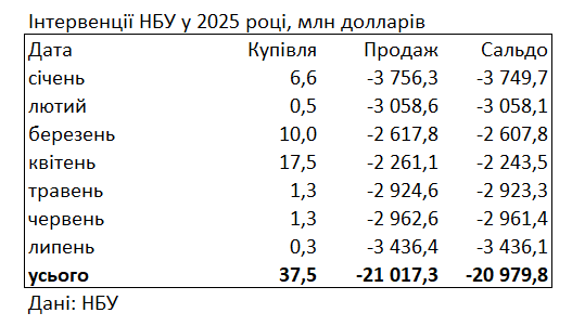 Структурний дефіцит валюти в липні збільшився до максимуму з липня 2025 року. Національний банк України збільшив продаж доларів за відносно стабільного курсу долара.