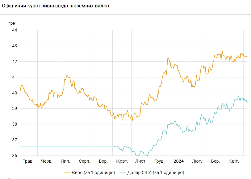 Офіційний курс на 6 травня 2024 року встановлено на такому рівні: 39,3969 грн за 1 долар (-0,1376 грн).