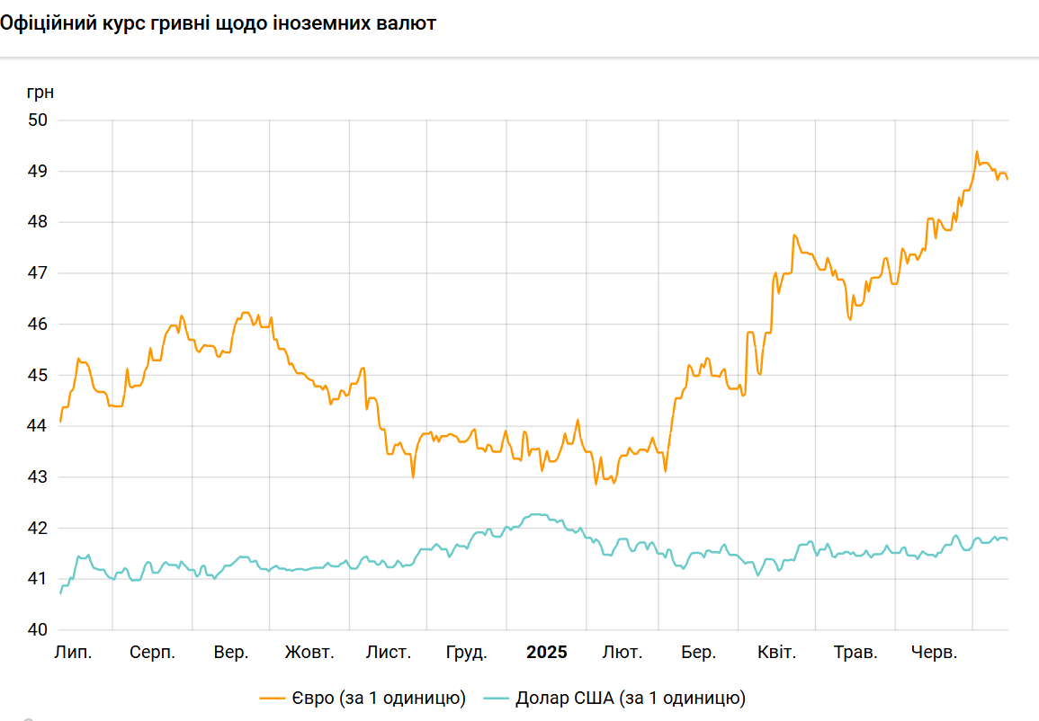 Офіційний курс на 14 липня 2025 року встановлено на такому рівні: 41,7842 гривень за 1 долар (-0,0390 грн).