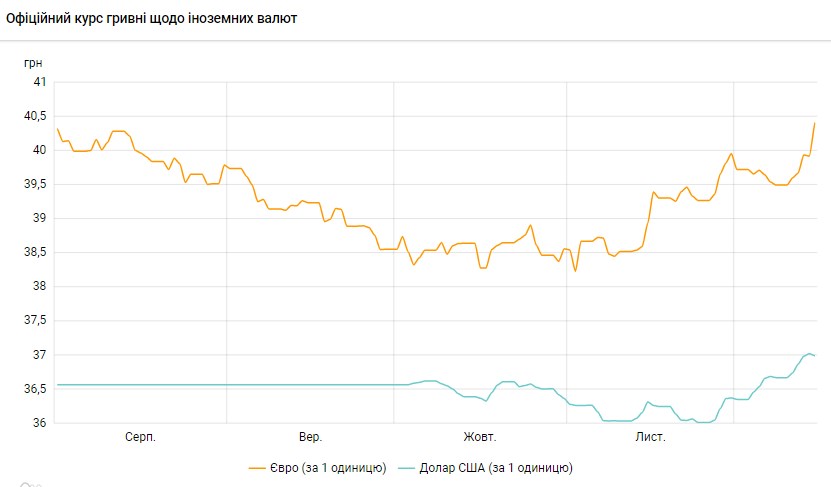 Національний банк України (НБУ) знову опустив курс долара нижче за 37 гривень. Водночас курс євро вперше із серпня перевищив рівень 40 гривень.