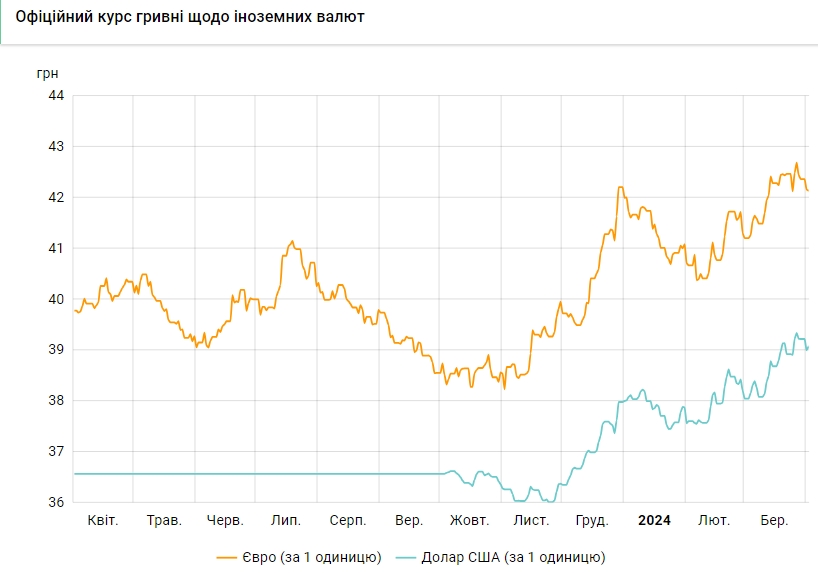 Офіційний курс на 2 квітня 2024 року встановлено на такому рівні: 39,0749 грн за 1 долар (+0,0775 грн).
