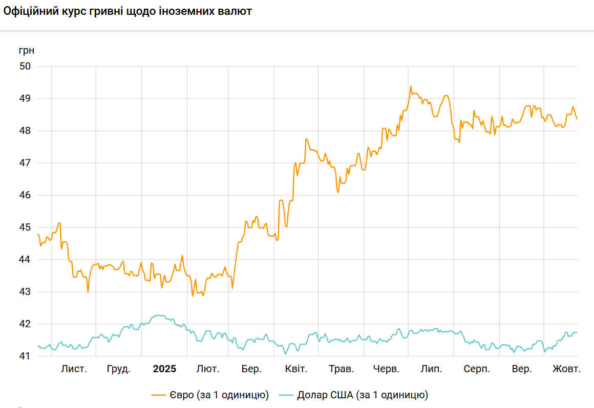 Також Кабмін у проєкті бюджету на 2026 рік заклав курс євро: у 2025 році середній курс становитиме 45,8 грн/євро, у 2026 році - 49,4 грн/євро.
