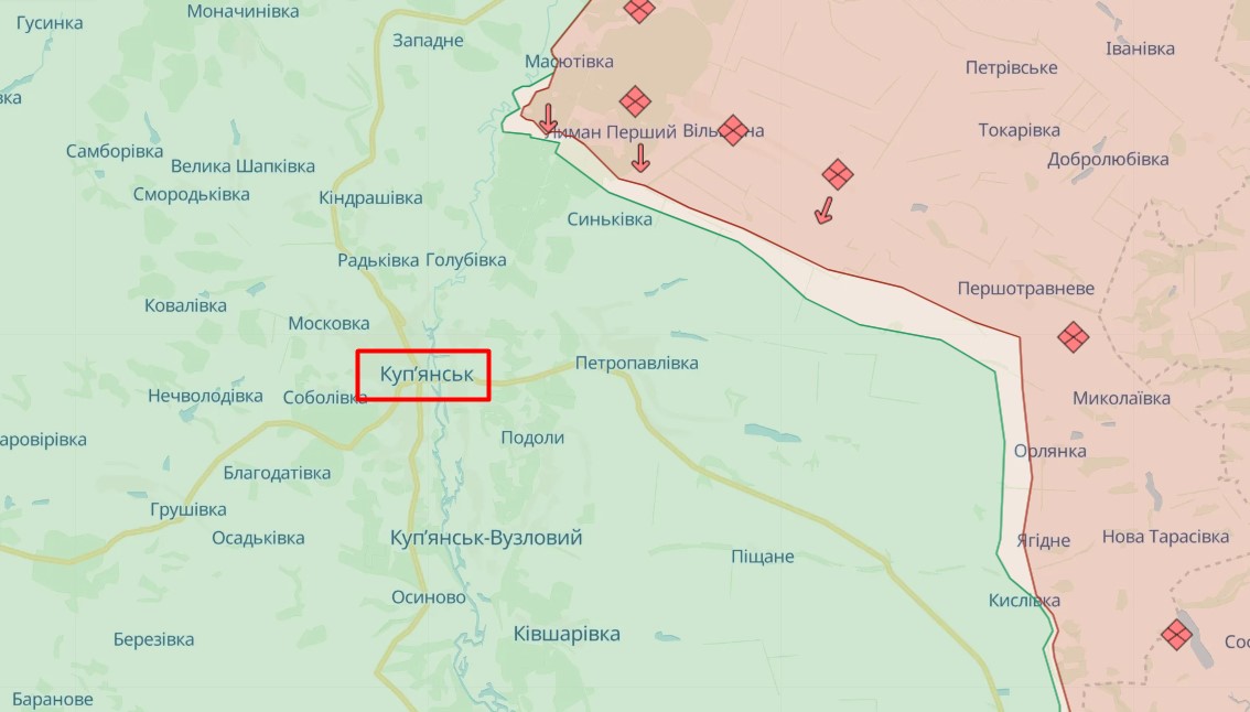 Росіяни досягли обмежених успіхів під Куп'янськом та вирівняли лінію на північний схід від міста (фото deepstatemap.live)