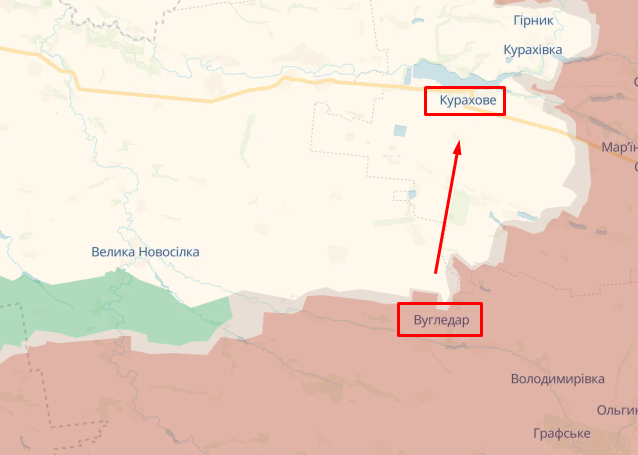 Наступною після Вугледара ціллю росіян може стати Курахове (фото deepstatemap.live)
