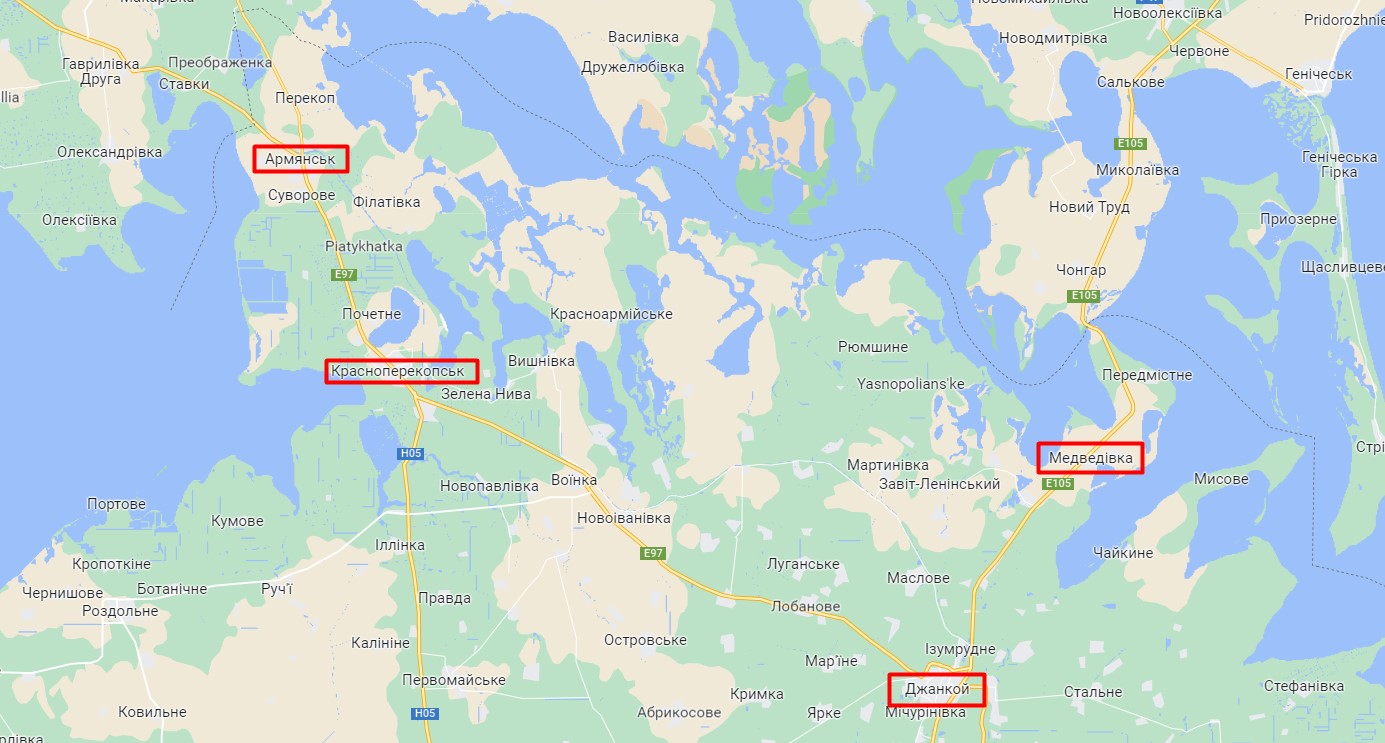 Фото: росіяни будують оборону Криму в трапеції Армянськ, Медведівка, Джанкой та Красноперекопськ ( google.com/maps)
