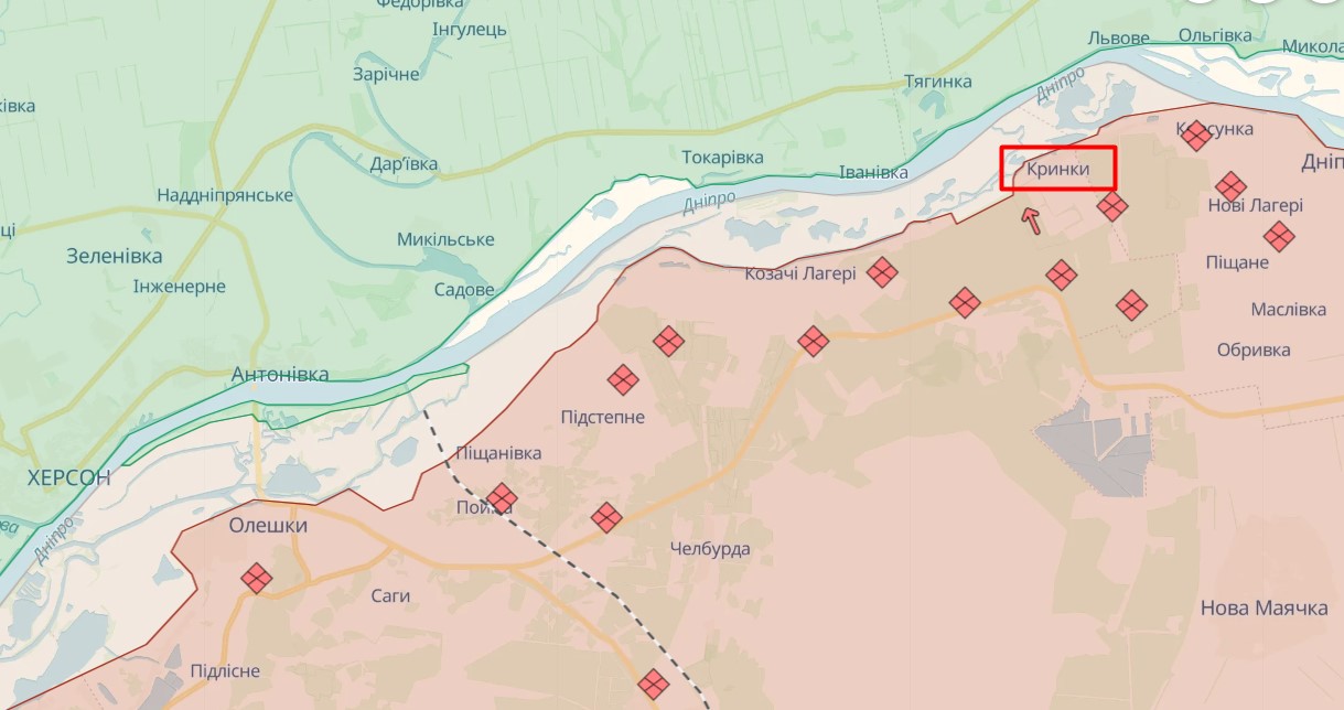 Плацдарм у районі села Кринки виглядає дуже перспективним (фото deepstatemap.live)