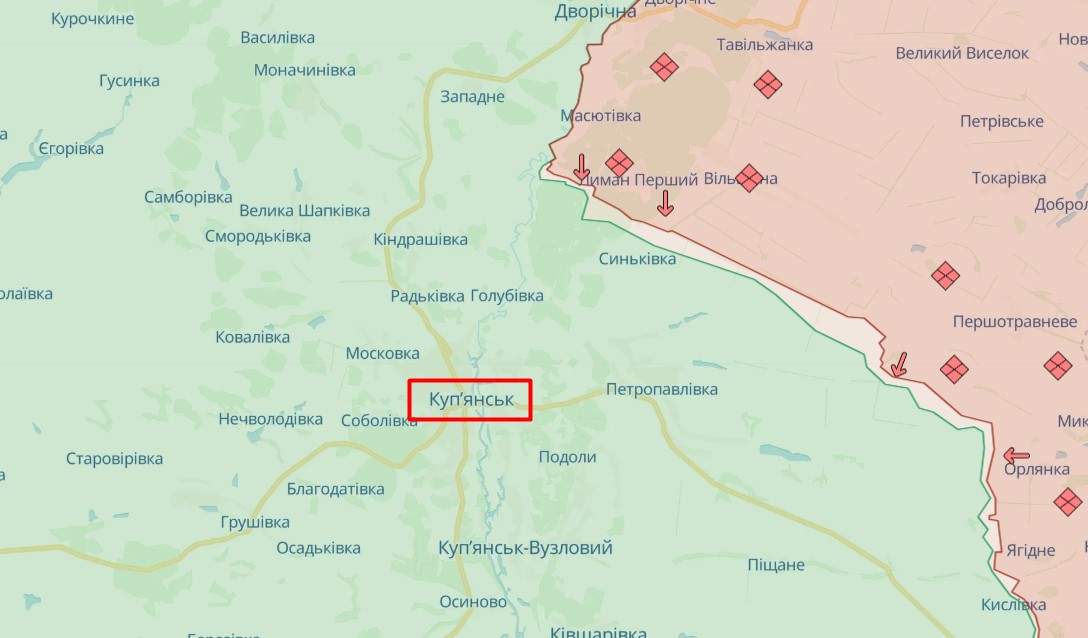 Окупанти намагаються вийти на Куп'янськ зі сходу (фото deepstatemap.live)
